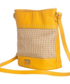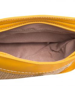 - Geanta de dama din piele ecologica combinata cu textil, ce se inchide cu fermoar