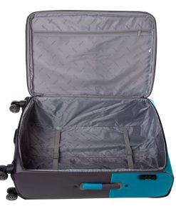 La interior trolerul prezinta un buzunar cu fermoar si curele elastice pentru fixarea bagajelor